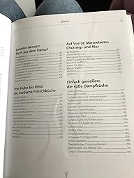 Dieses Buch ist einfach genial: es sind super Rezepte die trotzdem einfach und ohne exotische Zutaten aus dem Feinkostladen auskommen. Wer hätte gedacht das man im Dampfgarer zum Beispiel auch einen Auflauf oder Nachspeisen (natürlich auch die bayrische Dampf Nudeln) zubereiten kann. Aber die in verschiedenene Kategorien eingeteilten Rezepte umfassen zum Beispiel auch Dinge wie eine raffinierte Entenbrust.
