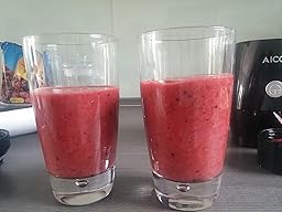 Ich habe jetzt schon mehrere Smoothies zubereitet, mit Banane, Erdbeere usw. und auch in Verbindung mit Vanilleeis. Der Mixer hat alles gut bewältigt und ist kraftvoll.