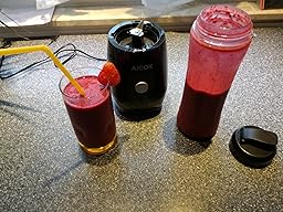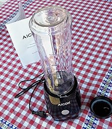 Aicok mini Smoothie maker mit tragbareren Flasche. es ist ganz einfach,dass Obst oder Gemüse zu mixen.So können Sie sich stets Frischen Saft oder Gemüse Saft selber herstellen.