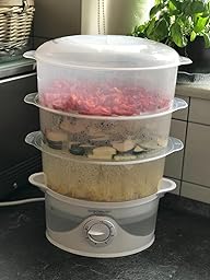 • 【Intelligenz】 Klare Wasserstandsanzeige über Stunden können Sie wissen, wann man auffüllen muss; 2 seitliche Wassereinlässe zum leichten Nachfüllen; kommt mit dreistufigen stapelbaren und abnehmbaren BPA-freien transparenten Behältern, jeder Behälter ist 3L Kapazität. Gesamt passen 9L; BPA-freie Deckel und Reisschüssel für regelmäßiges Dämpfen; Eierhalter zum Kochen von Eiern leicht gemacht.