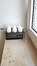 Zwei Dinge nerven mich an diesem Eierkocher. Erstens ist das Gerät relativ leicht und der Einschalter relativ schwer gängig. Man muss daher immer aufpassen, dass man den Eierkocher bei Einhandbedienung nicht weg schiebt anstatt den Schalter zu betätigen.