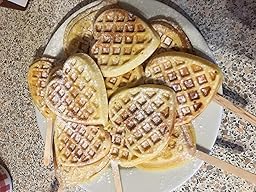 Habe beim ersten mal das Rezept vom Kindergarten genommen für ein “normales Waffeleisen”. Die Waffeln sind jedoch sehr kompakt gewesen. Man sollte besser das beigelegte Rezept nehmen die sind schön locker. Man kann die Waffeln auch gut ohne Stiel backen. Waffelpätzlchen kann man damit besser backen als mit den runden Eisen.