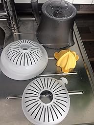 Zum Säubern kann man das Sieb trennen so das man 2 Teile hat und auch das Fruchtfleisch ganz leicht abwischen kann.