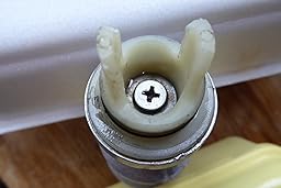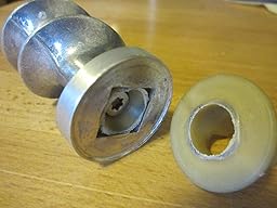 Die Auflagefläche habe ich mit Sekundenkleber auf die Schnecke geklebt, die Original- Befestigungsschraube entfernt und durch eine längere Senkkopfschraube ersetzt. Zusätzlich habe ich eine große Unterlagscheibe eingebaut, die das Teil fest anpresst.