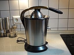 Sehr schöne und prakatische Zitruspresse mit Gehäuse aus Edelstahl.