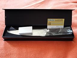 Fazit: Ich bereue den Kauf nicht. Das Messer ist schärfer als jedes Messer, dass ich bisher besessen habe (und ich hatte bereits ein paar halbwegs gute Messer), es schneidet prima, lässt sich einfach reinigen und sieht schick aus. Ich würde es daher trotz der Tatsache, dass es keinen Vollholz-/Echtholzgriff hat, weiterempfehlen. 🙂