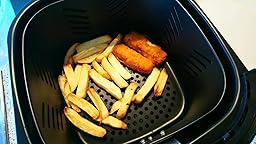 - Dank des großen Fassungsvermögens (2,5 l) genügend Pommes Frites für 6 Portionen in einem Durchgang. , Die herausnehmbaren und spülmaschinenfesten Teile sind einfach zu reinigen.