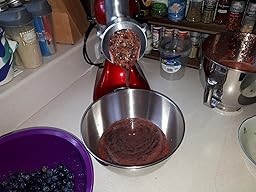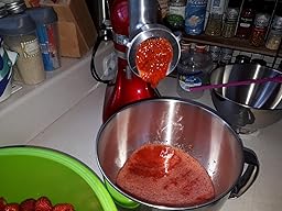 Zum Pürieren von Beerenobst für Marmelade (Konfitüre) mit kleinster Lochscheibe auch sehr ideal. Allerdings habe ich die Heidelbeeren anschlieÃend noch durch die Flotte Lotte gedreht um auch die kleinsten Kerne rauszufiltern, bei Erdbeeren genügt das Wolfen alleine. AnschlieÃend das Mus erst gekocht.