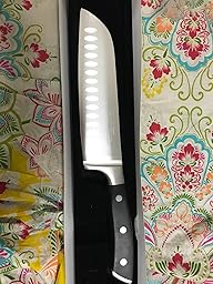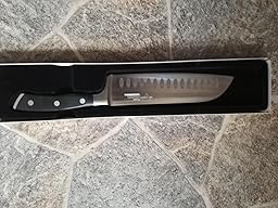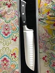 Rezension bezieht sich auf: Kochmesser Santokumesser Küchenmesser 17 cm Allzweckmesser Kullenschliff Ultra Scharfe Klinge Rostfreier Stahl Hackmesser Ergonomischer Rutschfester Griff