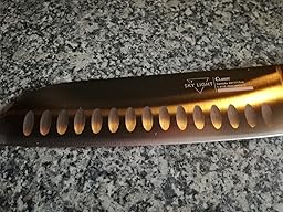 • Hollow Edge Design: Die 17 cm Klinge des Santoku-Messer ist mit geschliffenen Kullen versehen, die das Kleben von dünnem Schnittgut an der Klinge verhindern