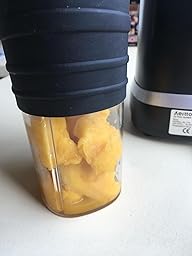 Es ist sehr einfach zu verwenden, stellen Sie sicher, dass Sie etwas Obst schneiden, bevor Sie es dort einsetzen (Bananen oder geschnittene Erdbeeren in Hälften). Ich behalte es auf meinem Schreibtisch, ist klein und braucht keinen groÃen Platz. Ich benutze das jetzt seit 2 Wochen. Ich verwende gefrorene Gemüse und Früchte, ich verwende kein Eis.
