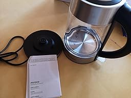 - 💧【Glas & BPA-Freie Bauart】Geschmacksneutrales Boro-Silikatglas für puren Wassergenuss, kein Plastik Geschmack, Wasserkocher komplett BPA-Frei. Der Füllbehälter besteht aus Glas und Edelstahlelementen.