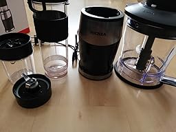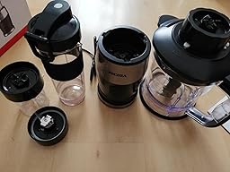 Ich bin sehr begeistert. Sieht nicht nur richtig schick aus, ist auch super im Gebrauch und übertrifft meine Erwartungen. Macht enormen Spaß damit alles zu leckeren Smoothies, Brotaufstrichen/Dips, kalten Suppen zu verarbeiten. Auch dass neben den Flaschen auch der große Mixbecher noch enthalten ist, ist fantastisch. Gerade wenn die ganze Familie einen Smoothie möchte. Kann ich nur empfehlen. Extrem tolles Preis-Leistznsgverhältnis. Ich habe selbst viele sachen zb Ingwer, Knoblauch, Früchte, Kaffeebohnen, und noch mehr probiert, um zu zerkleinen. und lief ganz gut !! also kann ich nur weiterempfehlen.