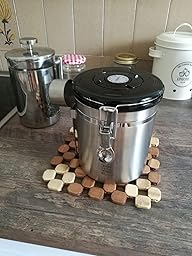 Rezension bezieht sich auf: NOUTEN Premium 500g Kaffeedose aus Edelstahl zur Aufbewahrung von Kaffee – Licht- und Luftdichter Vorratsbehälter – Inkl. Edelstahldosierlöffel, Halterung und 2 Ersatzventile! (Haushaltswaren)