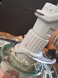 Am ersten Blick war er super und sehr einfach zu bedienen aber nach der dritten Verwendung, hab ich mich gewundert was für harte Teilchen in meinen Zwiebeln/Knoblauch sind. Das Plastik über den Klingen und das Verbindungstück war komplett geschmolzen (siehe Fotos).