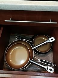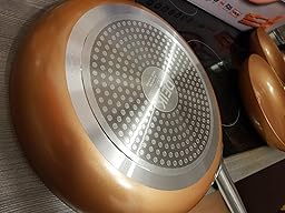 - Haltbare Aluminiumkonstruktion: Aluminiumkonstruktion sorgt für schnelles und gleichmäßiges Erhitzen, extrem haltbar und hoch kratzfest, 3 mm dicker Pfannenkörper ist fester, nicht leicht zu verformen, FDA zertifiziert