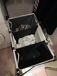 - 👍【Klassifiziertes Design】Es gibt drei separate Räume, darin Sie Ihre Kleidung nach Ihren Bedürfnissen sortieren können. Sie können drei kleinere Taschen auf der Rückseite des Wäschekorbs sehen, wo Sie einige kleinere Kleidung, wie Socken, Unterwäsche, etc. platzieren können.