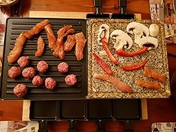 Sehr positiv finden wir, dass man die Wahl hat zwischen 2 Grillflächen oder einer Grillfläche und einem heiÃen Stein. Je nach bedarf. Zudem können die Grillflächen auch umgedreht werden und man hat dann die Möglichkeit Pfannkuchen, Rührei oder Spiegelei auf dem Raclette zu machen.