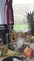• Spülmaschinengeeignetes Zubehör: Standmixeraufsatz aus Kunststoff (1,5 l Fassungsvermögen), Edelstahlscheibe zum Schneiden und Raspeln, Emulgiereinsatz und Teigwerkzeug aus Kunststoff