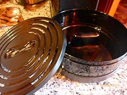 schwarz glänzend, Kunststoff. Kanne für angegebene 7 Tassen Kaffee, relativ schmale und lange Maschine mit abziehbarem Wassertank.