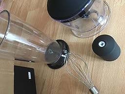 Der Schneebesen ist sehr weit, viel weiter als der meines anderen Pürierstabes. Dadurch kommt mehr Luft rein beim schlagen, was ein tolles Ergebnis erzielt.
