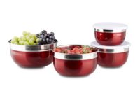 Relaxdays Schüssel Set mit Deckel, Edelstahl, verschiedene Größen, 4-teilig, Camping, HBT: 9 x 18,4 x 18,4 cm, rot