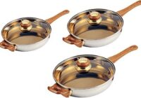 aus handpoliertem Edelstahl induktionsfähig verkapselter Boden isolierte Griffe hoher Schüttrand Bratpfanne mit Glasdeckel: ø 20*6 cm Bratpfanne mit Glasdeckel: ø 24*7 cm Bratpfanne mit Glasdeckel: ø 28*8 cm Stärke der Topfwände: 0.4 mm 3 Pfannen aus handpolietem, extra-dünnen Edelstahl für optimale Kochergebnisse 28, 24 & 20 cm Durchmesser bei einer Wand-Stärke von ca 0,4mm verkapselter… Read More »