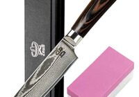 Die Zeuß Chefmesser gehört zur Serie der Damastmesser und zählt somit zu den schärfsten Messern der Welt. Dies verdankt es der Klinge aus hoch legiertem, besonders gehärtetem VG 10 Kohlenstoffstahl. Die 20 cm lange Messerklinge besteht aus insgesamt 67 Schichten und ist somit bestens vor Bruch und Korrosion geschützt. Das Damastmesser von Zeuß sieht nicht… Read More »