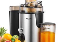 Entsafter Aicok Zentrifugaler Entsafter, Weit-Mund Edelstahl Entsafter, 3 Geschwindigkeiten Für Obst und Gemüse, mit Rutschfesten Gummifüßen, BPA-Freier Saftauffangbehälter und Reinigungsbürste