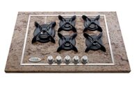 Gas-Kochfeld, 5 Brenner, Shiwakashi Granit, Modell “Flat”, Gusseisen Gitter mit schwarzem Matt-Emaille, Größe 760 mm x 510 mm