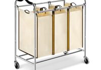 LANGRIA Wäschekorb Wäschesammler Rollend Wäschesortierer 3 Fächer Chrome Metal Rahmen 75 lbs Kapazität Beige