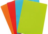 Die flexiblen Schneidematten aus dem Hause culinario sind perfekt für Küche, Camping oder als farbenfrohes Platzdeckchen verwendbar. Durch Ihre Biegsamkeit landet das Schnittgut dort, wo es hingehört. Zum Trichter geformt, stellt das Umschütten in Pfannen, Töpfe oder Schüsseln kein Problem mehr dar. Die 4 Schneidematten sind farblich gekennzeichnet und sorgen so für eine bessere Küchenhygiene.… Read More »