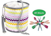 ZWICKER Design Wäscheklammerbeutel zum Aufhängen – Klammerbeutel mit 40 Wäscheklammern I Outdoor Wäschespinne Wäscheleine I 4,1l