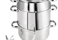 Kopf Entsafter VITAL Typ: Dampfentsafter bestehend aus einem Wasserbehälter (ca, 3,5 L), einem Saftauffangbehälter mit Ausguss und einem Fruchtkorb (ca, 3 L) mit passendem Glasdeckel (induktionsgeeignet) Material: Aus hochwertigem, rostfreiem 18/10 Hochglanz-Edelstahl – für alle Herdarten geeignet (auch Induktion), spülmaschinenbesändig, formstabil, geschmacksneutral, pflegeleicht Eigenschaften: Topf mit praktischem Abgießrand, verkapseltem Sandwichboden, 3,5 mm Gesamtbodenstärke, 0,6 mm… Read More »