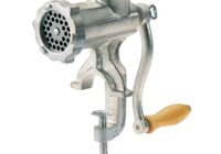 Robuste Qualität aus veredeltem Stahlguss verchromt, mit Edelstahlmesser und Lochscheibe 4,5 mm, leichtgängig und stark. Auch zur Herstellung von Spritzgebäck geeignet. Größe: 5 Küchenbedarf Zubehör: Typ: Fleischwolf Marke: WESTMARK Material Küchenbedarf: Material: Stahlguss Zusatzinformation: im illustrierten Karton Fleischwolf mit Lochscheibe (4,5 Ø mm) und Schraubzwinge zur Tischmontage zum Zerkleinern und Haschieren von Fleisch, Fisch und… Read More »