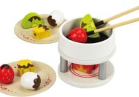 Schokoladen Fondue, 15 teilig Das Schoko Fondue ist ein Fest für alle Schleckermäuler! Kinder können ihre Teddys, Puppen und Freunde einladen und spielerisch ein tolles Schokoladen Fondue veranstalten. Details– 1 Fondue-Topf, 2 Teller, Obst, Feuer (Holz), 2 Essstäbchen– aus Holz gefertigt Ab 3 Jahren 15-teilig Fördert die Kreativität und das Rollenspiel Realistisches Holzspielzeug für die… Read More »