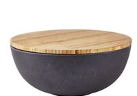 Galzone Küchenschale mit Deckel aus Bambus, Obstschale, Schüssel, Salatschale, Servierschale (Inhalt 2 Liter Ø 24.0 cm H 10.0 cm, schwarz)
