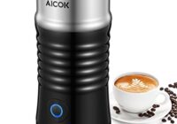 Aicok Milchaufschäumer Elektrisch, Automatischer und Doppelwandiger Edelstahl Milchschäumer, Erhitzen und Aufschäumen für Kaffee, Latte, Cappuccino (Schwarz)