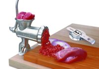 manueller Fleischwolf Gr. 8, Eisenguss – verzinnt, mit Spritzgebäckvorsatz, NEU hochwertiger Fleischwolf aus verzinntem Eisenguß ideal zum Zerkleinern von Fleisch, Fisch, Geflügel, etc. inkl. Edelstahl – Spritzgebäckvorsatz, 4 – flügeliges gehärtetes Stahlmesser, 4,5 mm Lochscheibe Kunststoff – Unterlegfüße zum Schutz der Arbeitsplatte / Küchentisch geeignet für Tischplatten bis. max. 4,0 cm, inkl. Anleitung und Pflegehinweise… Read More »