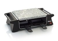 Raclette-Grill mit 4 antihaftbeschichteten Pfännchen Tischgrill Elektrogrill Steingrill für 4 Personen Grillplatte (sparsame 500 Watt, 1 grosse Grillfläche Naturstein + integrierte Handgriffe)