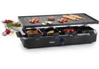 Raclette und Tisch-Grill für 8 Personen (Raclette mit 8 Pfannen, Guss-Grill-Platte, Stein-Grill, heißer Stein, Antihaftbeschichtung, Tischraclette, Elektrogrill)