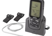 Grillthermometer Funk 8 Garprogramme: Fisch, Rind, Kalb, Schwein, Lamm, Pute, Huhn und Hamburger Bis zu 5 Garstufen wählbar Licht- und Tonsignal bei erreichter Garstufe Edelstahl-Temperatursonde mit 1,2 m Kabe l Messbereich: 0-300 °C Inkl. Alkaline-Batterien Auch als Küchentimer einsetzbar Funkreichweite: ca. 15 m Artikel ist Neu und Originalverpackt. 8 Garprogramme: Fisch, Rind, Kalb, Schwein, Lamm,… Read More »