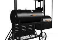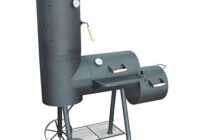 Gestell aus Rundrohr und große Stahlräder, Aschetür mit Riegelverschluß, Ablagefläche vorn mit abgerundeten Kanten eingebautes Thermometer 0 bis 427 Grad, Stahlblech mit Spezial Feuerschutzlack lackiert, Ablagefläche unten Halter für Fettbehälter, 2 Kammern: großer Grill + Räucherofen, Griffe mit Holz verkleidet Höhe ca.: 1,48 m, Breite ca.: 1,86 m, Tiefe ca.: 0,52 m, Smoker mit 3,5… Read More »