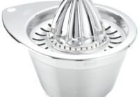 Der Presskegel ist optimal auf das Auspressen von Zitronen und Limetten ausgerichtet. Kein Verstopfen der Ablauflöcher. Großer Behälter mit tropffreiem Rundumschüttrand. Spülmaschinenfest, einfach zu reinigen und komplett aus Edelstahl. Material: Edelstahl 18/10 Länge(mit Griff): 18cm, Fassungsvermögen: 0,5l Höhe Kegel: 7 cm, Höhe Gesamt: 14 cm, Durchmesser mit Auflage: ca 14cm, Hohe Stabilität und Hygiene durch… Read More »