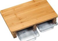 Kesper Schneidebrett Bambus mit zwei AuffangschalenHochwertiges Schneidebrett aus FSC® zertifiziertem Bambus mit zwei herausziehbaren Auffangschalen aus Kunststoff.Das Schneidegut kann bequem in den Auffangschalen gesammelt werden.   Artikelmerkmale:Abmessung Schneidebrett: 41,0 x 26,5 cmAbmessung Schalen: 26,5 x 16,0 x 6,5 cmHöhe: 8,0 cmFSC® zertifizierter Bambus, schnittfest und messerschonendAuffangschalen: Kunststoff transparent, spülmaschinenfestKesper Art. Nr.: 5853  Dekoration nicht im Lieferumfang enthalten.      Maße: 41×26,… Read More »