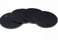 Oxid7® Topf-Untersetzer aus Silikon in Schwarz | Topflappen 4er Set Rund | Lebensmittelecht / Hitzebeständig bis zu 230°C & Spülmaschinenfest