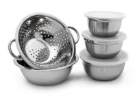 Mit diesem Küchenhelfer-Set holen Sie sich vier Schüsseln und ein Sieb aus Edelstahl in die Küche. Das Schüssel Set ist nicht nur praktisch, wenn Sie backen, kochen oder einen Salat zubereiten möchten. Die drei kleineren Schüsseln verfügen jeweils über Deckel aus Kunststoff, sodass Sie die Rührschüsseln auch als Frischhalteboxen oder Transportdosen einsetzen können. Ohne die… Read More »