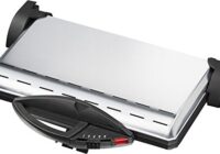 – Grob Gestrickt, klassische Grillplatte, beide antihaftbeschichtet und herausnehmbar.Einstellbare Temperatur, Thermometer und Timer.System zur Sammlung von Fett zu kochen. Deckel verstellbar.Leistung 2400 W. Maße: 32 x 14,5 x 13 cm. Technische Daten Leistung: 2400 W (230 V ~) Gewicht: 14,8 kg Steba VG 500 Grill Elektro mit Rabatt auf Amazon.de Preis: EUR 291,56 Angebotspreis: [wpramaprice asin=”B00GPISWVA”]