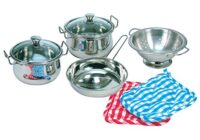 EdelstahlKochtopfSet 8 Teile endlich können auch die Kleinen wie die Profis kochen. Mit diesem schönen EdelstahlKochGeschirr macht es besonders viel Spass.Bestehend aus zwei Töpfen mit Deckel einem Tiegel einem Sieb undzwei Topflappen Größe 32 x 22 x 105 cm ACHTUNG Erstickungsgefahr durch verschluckbare Kleinteile. Für Kinder unter 36 Monaten nicht geeignet. Hochwertiges Holzspielzeug in kindgerechtem… Read More »