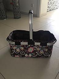 Bin sehr begeistert. Wäre kam sehr gut verpackt und schnell an. Die Einkaufstasche hat einen schönen Design und Mann kann sie leicht zusammenklappen. Henkel umlegen und einfach zusammen drücken. Angenehmer halt durch den Gummi griff . Falls was verschüttet wird kann Mann denn Stoff abnehmen waschen und wieder einsetzen . Es passt unheimlich viel rein erfüllt völlig meine Erwartungen.
